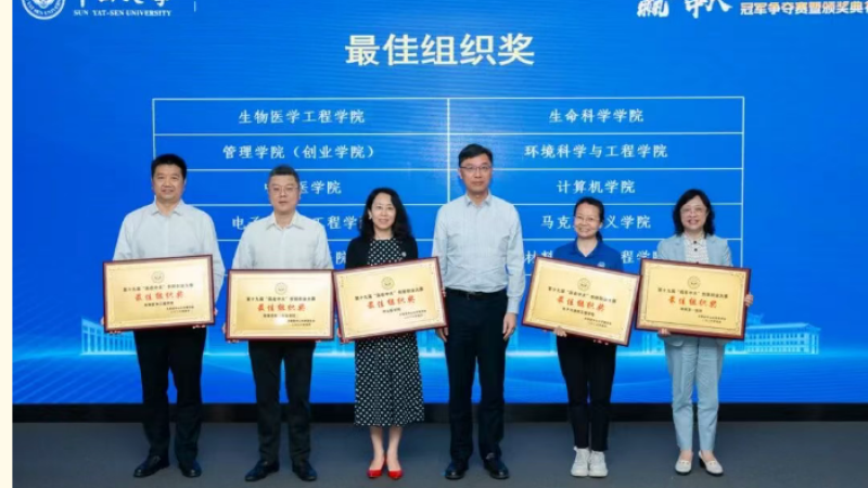 4月9日,中山大学第十九届“赢在中大”创新创业大赛冠军争夺赛暨颁奖典礼在广州校区南校园举行。中山大学党委书记刘承功、党委副书记张琪及相关职能部门领导出席活动,中山医学院党委郝雅娟书记、陈保瑜副书记以及获奖师生代表、观摩师生代表等参加活动。