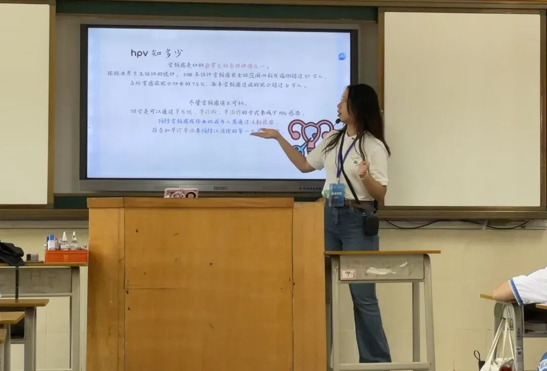 作为支教团成员,阮谭伊阳参与了广东省青年大学生“百千万工程”突击队暨“爱心助力,医教同行”中山大学中山医学院支教团。在连州市北山中学,她不仅传授医学知识,更播撒了爱与希望的种子。面对不同年级、专业的同学,她耐心讲解,用生动有趣的方式将复杂的医学知识变得通俗易懂,激发了孩子们对科学的热爱和对未来的憧憬。在交流过程中,她分享自己的成长经历,与北山中学的同学建立起深厚友谊,阮谭伊阳用她的热情,点亮了孩子们心中的梦想。