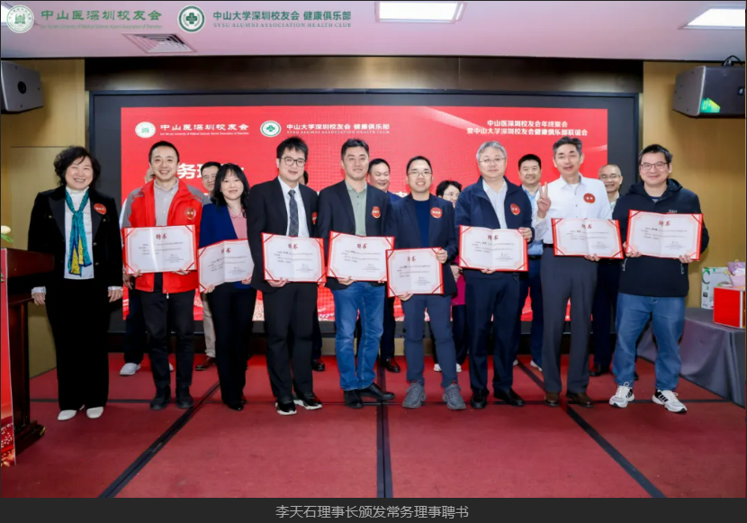 会上,王捷教授以深厚的母校情怀,为活动送上殷切嘱托与美好祝福;卢亮前会长高度赞扬李天石会长带领下的中山医深圳校友会做出的众多感人和卓越的贡献。李天石会长代表中山医深圳校友会向卢亮前会长赠送中山医学院鎏金相框。两届会长的手紧紧相握,象征着使命的交接与精神的传承,共同展现中山医人团结一心、薪火相传的深厚情谊与责任担当。 随后,李天石会长代表中山医深圳校友会作2024-2025年工作报告和2026年工作计划。工作报告指出:过去一年,中山医深圳校友会通过医学科普讲座、问诊咨询、疾病转诊,共服务校友超过10000人次,收到极好的社会效益,切实保障了十万中大深圳校友的健康;新建立广州校友健康咨询群,继续扩大校友之间的健康保障和联联谊工作。她表示将秉持初心,带领中山医深圳校友会汇聚更多校友能量,为校友健康保驾护航。 交流环节,校友们致敬母校,感念其深厚的培育之恩,致敬那份守护生命的永恒承诺与职业信仰,与会校友在畅叙往昔中凝聚共识,相约在未来道路上携手并肩。此次聚首,既是一场凝聚校友情感的温暖聚会,更是一次赋能健康事业发展的有力启航。