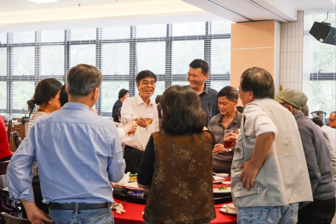 致辞结束后,学院领导班子及党委委员逐一上台,向在场教职工送上节日的问候与美好祝福。随后,集体向每一桌的老同志敬茶致意,气氛温馨热烈。