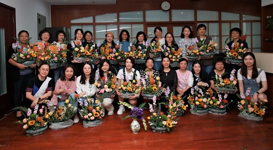 至此,今年的插花活动圆满落下帷幕,时至秋冬,小小房间里依然百花娇艳,芝兰芬芳,在这温馨和睦的气氛之中,情谊更胜花香浓!