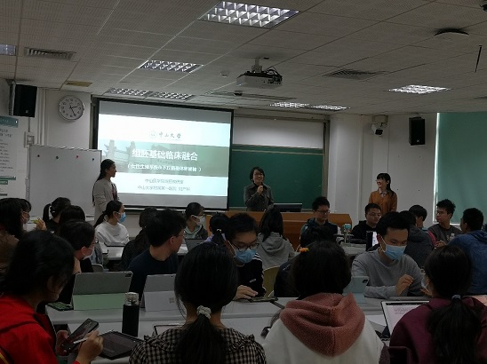 组织胚胎教研室于2021年1月邀请中山大学附属第一医院妇产科(何科、张焕晓医生)和孙逸仙纪念医院小儿科(梁立阳教授团队)参与教学工作;2021年12月1日再次邀请何科团队走进北校区教学楼,与朱永红教授、丁英副教授共同讲授女性生殖系统&下丘脑垂体卵巢轴课程。创新的“双师型”课堂,充分整合医学相关教学内容,实现临床知识与基础知识的有机融合,引导学生利用所学知识解决临床问题,既培养了他们的临床思维,又提高了分析和解决问题的能力,为日后进入临床打下夯实的基础。