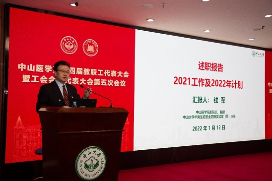 2022年1月12日上午,中山医学院第四届教职工代表大会暨工会会员代表大会第五次会议在北校园医学科技楼15楼博学厅召开。学院党政领导班子全体成员、教职员工代表等80余人参加会议。大会由学院党委书记张琪主持。
