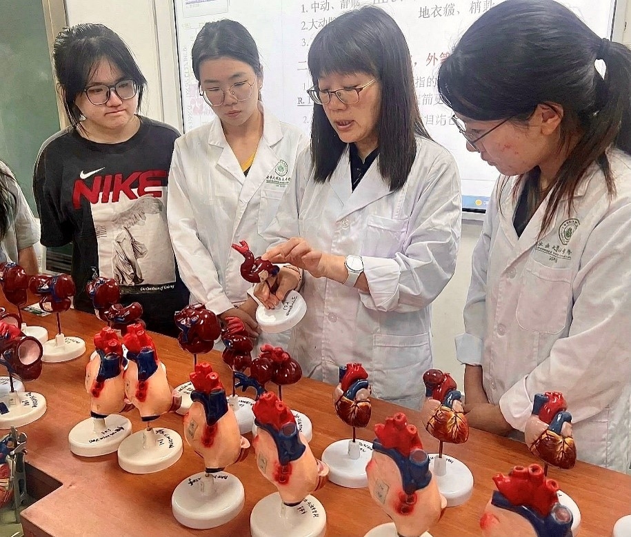 图1.丁英教授运用心脏模型直观讲解心脏发育过程