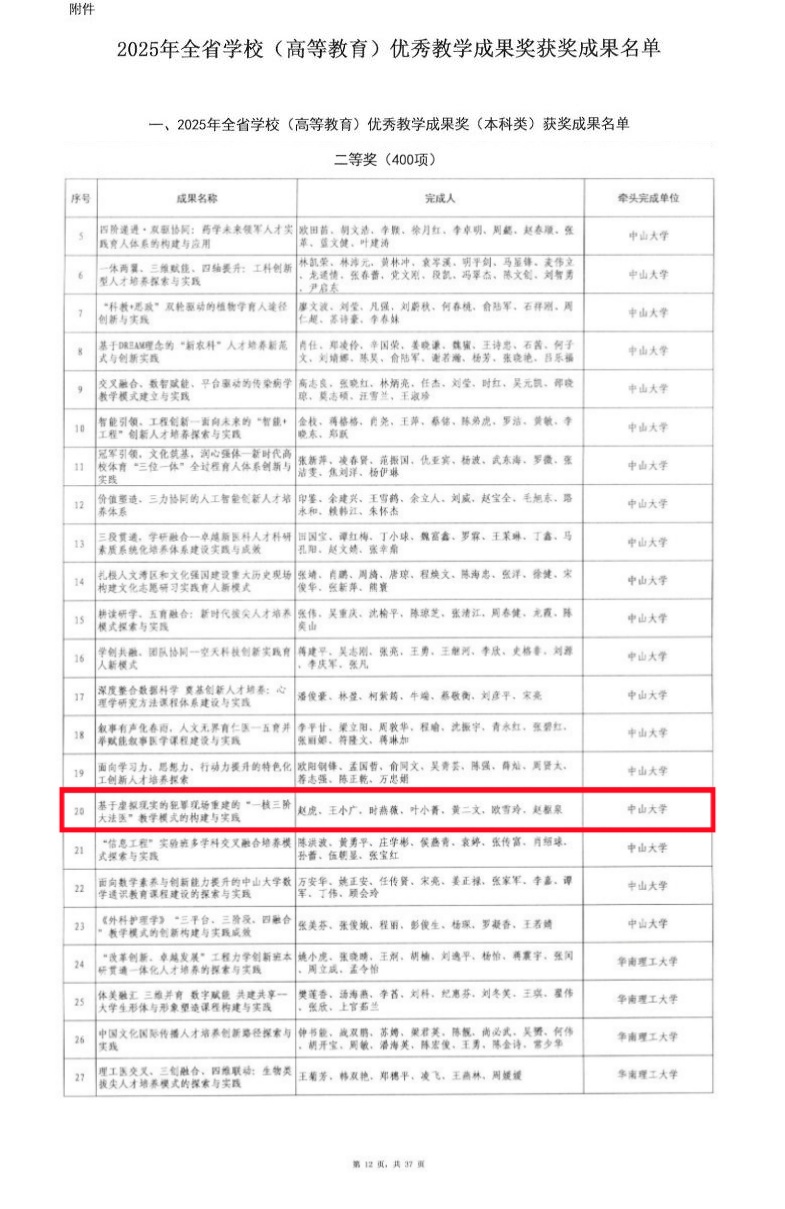 喜报 | 法医学系教学成果荣获2025年广东省教学成果二等奖