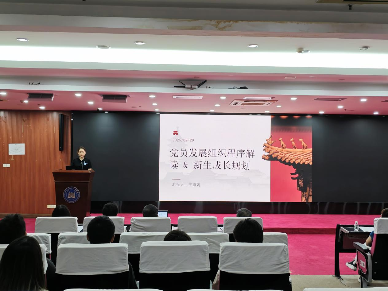 支部组织委员王雨嫣老师向全体师生详细讲解了党员发展的要求、条件和组织程序,帮助新生思想政治成长并合理做好组织发展规划。纪检委员时燕薇老师基于党纪、校规和纪律守则,结合警示案例,做了师德师风和学生纪律的教育,告诫师生知戒明矩,健康发展。