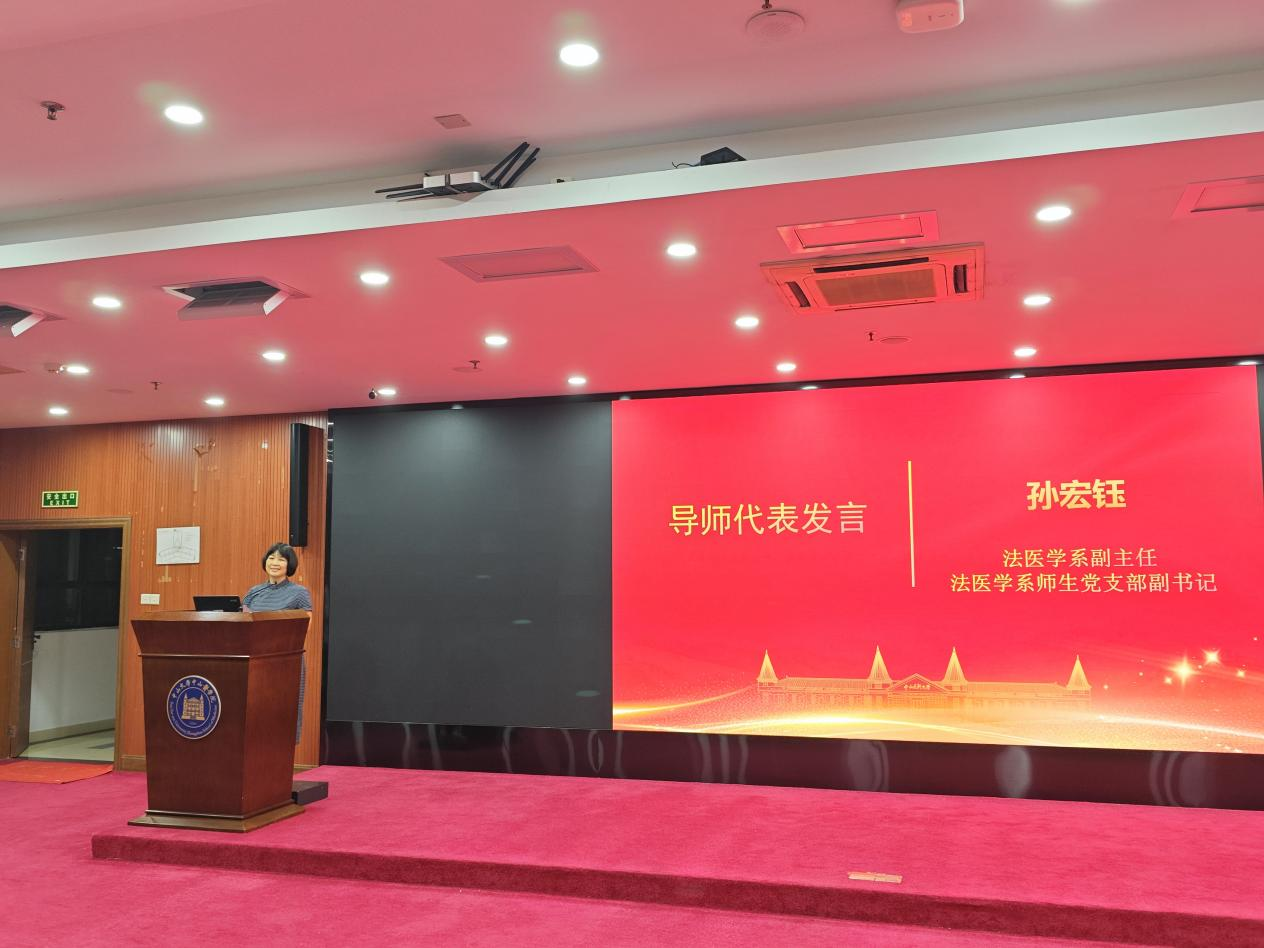 2024级学生代表分享在校学习、生活和社团活动的经验和体会;2025级新生上台逐一自我介绍;新生代表发表入学感言。随后,导师代表孙宏钰老师饱含深情地回忆自己学在中山医、教在中山医的法医经历和情怀,情深意切地寄语同学们既要脚踏实地、又要能仰望星空,不负韶华、追求卓越。“研究生之家”同学代表也分享了自己的学习、成长感悟,向同学们介绍了“研究生之家”平台帮助同学、服务同学的职能。